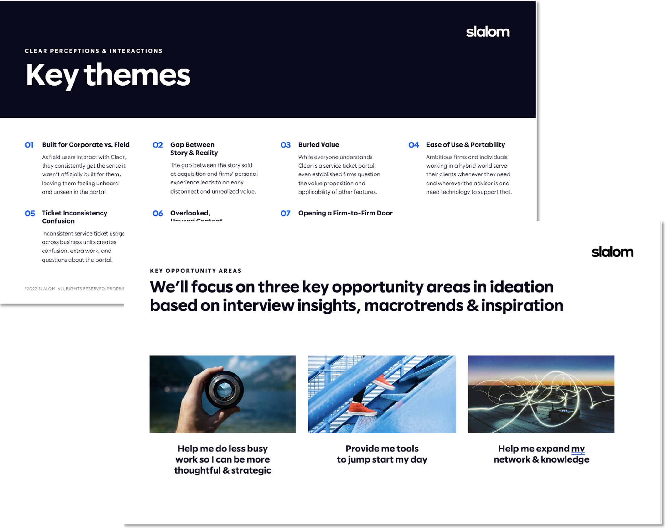 Synthesized discovery learnings to deliver an insights report with key opportunity areas for ideation and co-creation